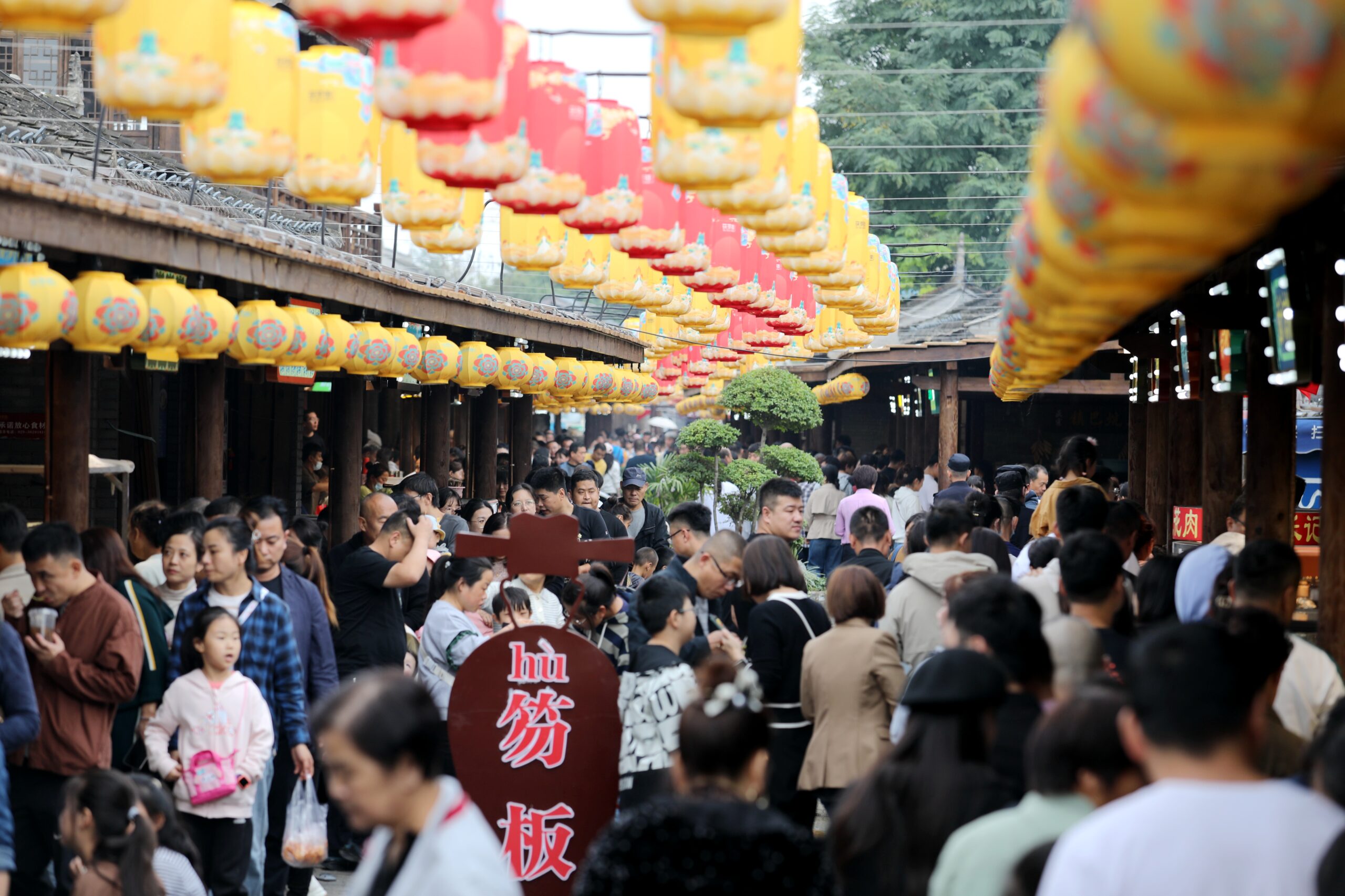 10月3日,正值国庆假期,位于陕西省咸阳市的茯茶小镇迎来大量游客。图为小镇内游人如织。 未经允许不得...