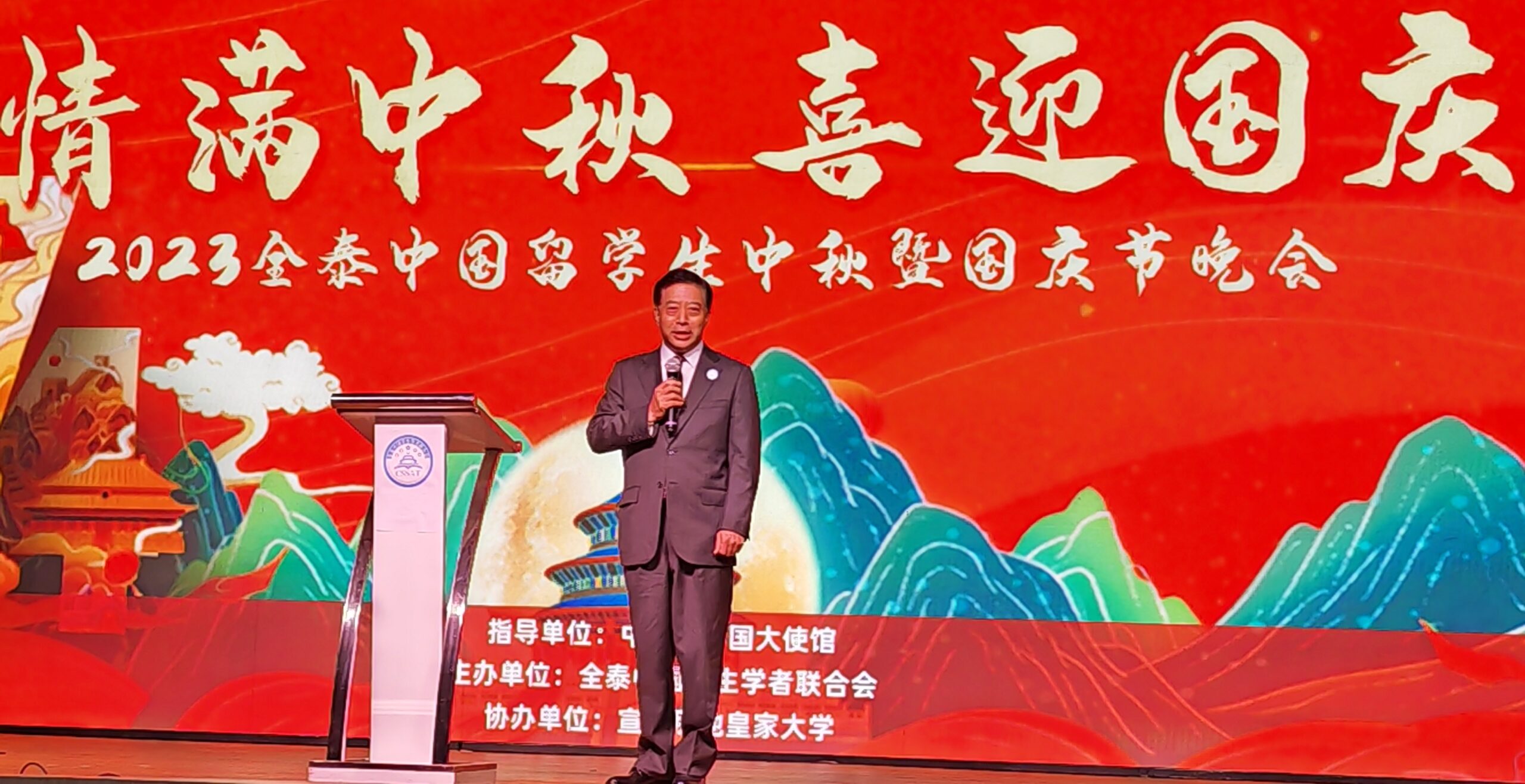 当地时间9月27日晚,全泰中国留学生中秋暨国庆晚会在泰国曼谷宣素那他皇家大学音乐厅举行。来自泰国各高...