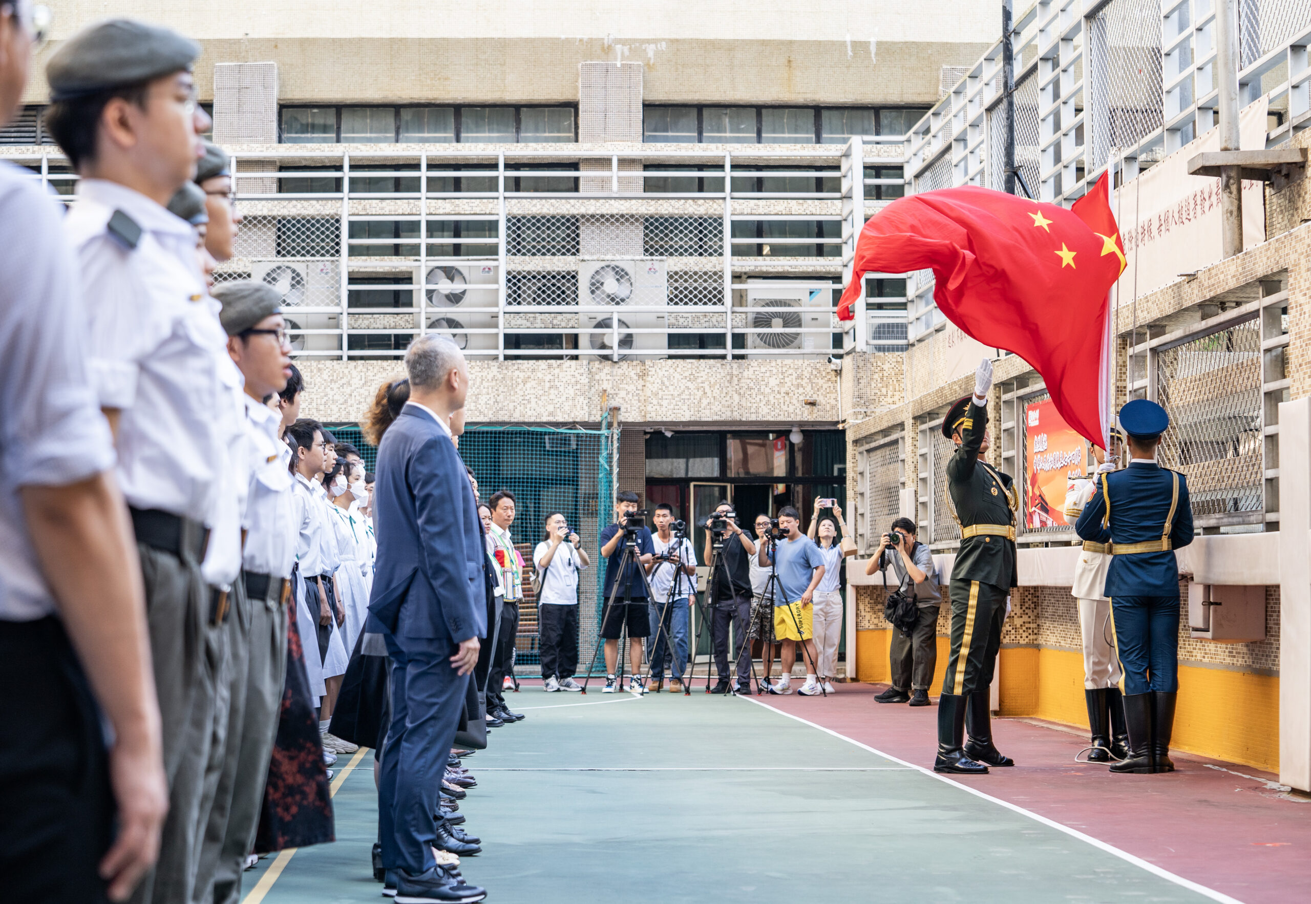 香港培侨中学举行七十四周年国庆升旗仪式