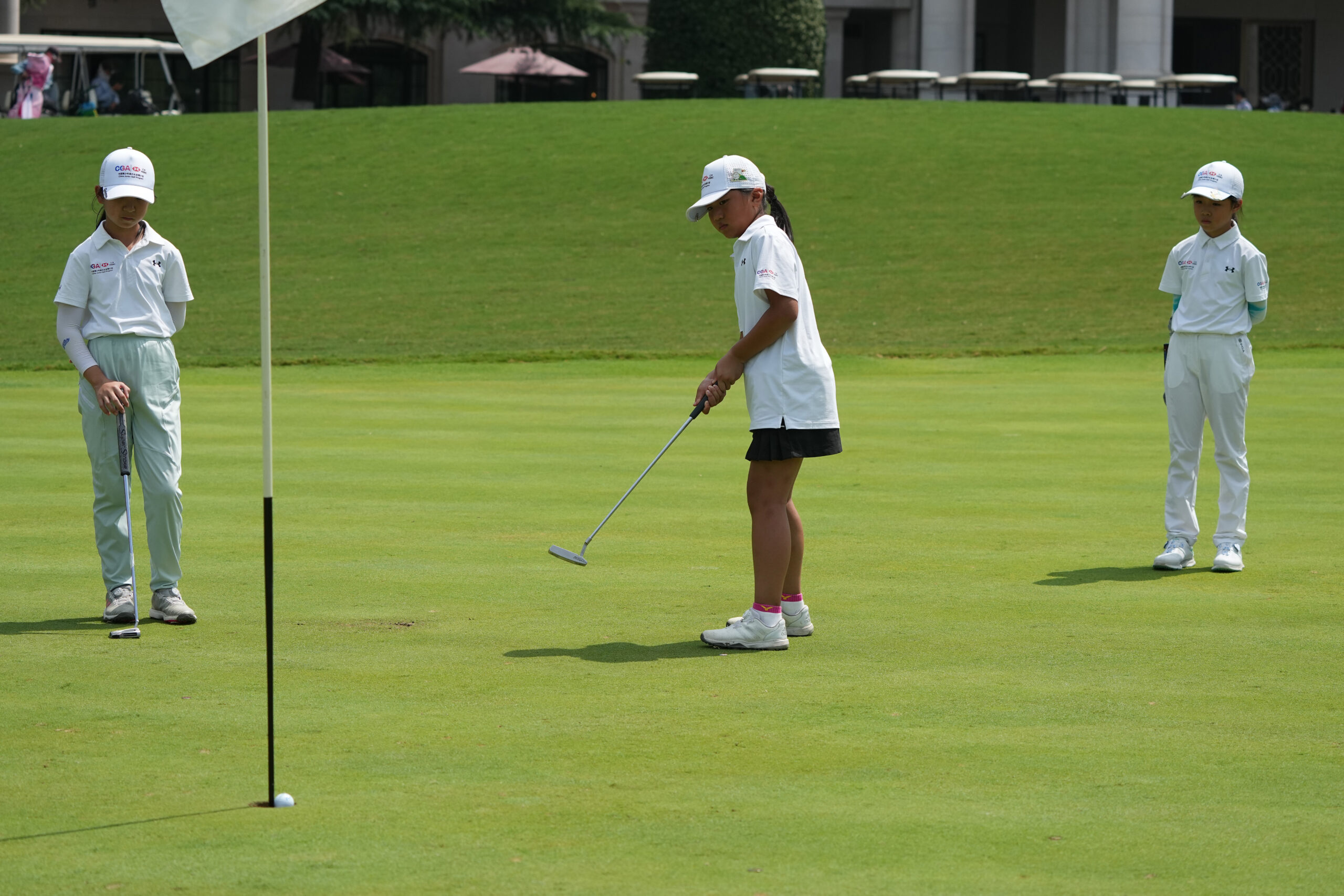 9月8日,女子C组选手胡一诺(中)在比赛中推杆进洞,其最终获得该组别冠军。当日,2023汇丰中国青少...