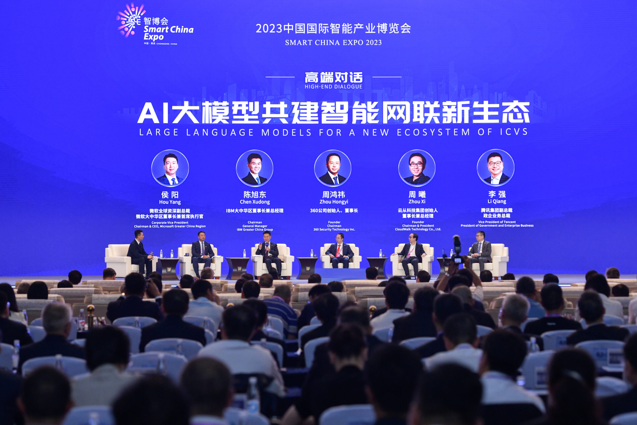 9月4日,重庆,2023中国国际智能产业博览会开幕式前首次设置高端对话环节。微软公司全球资深副总裁、...