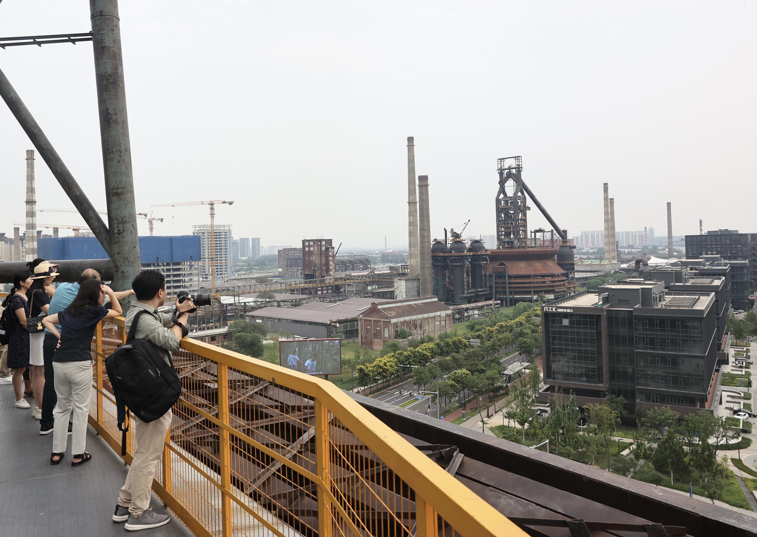 8月17日,北京,民众在首钢园三高炉观景台上观赏风景。据统计,自2020年5月园区向社会开放以来,首...
