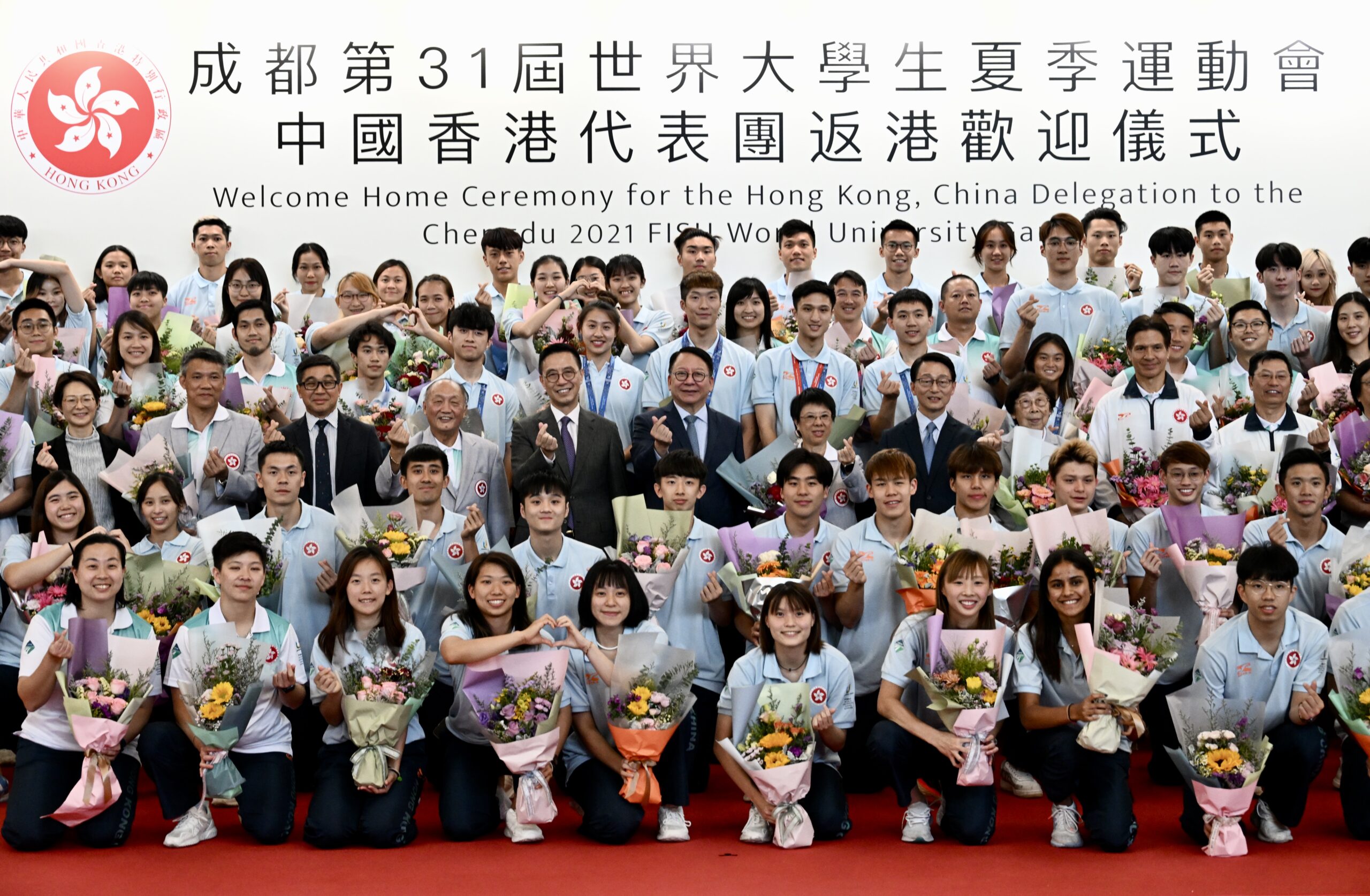8月9日,香港特区政府在香港国际机场举行仪式欢迎参加成都第31届世界大学生夏季运动会的中国香港代表团...